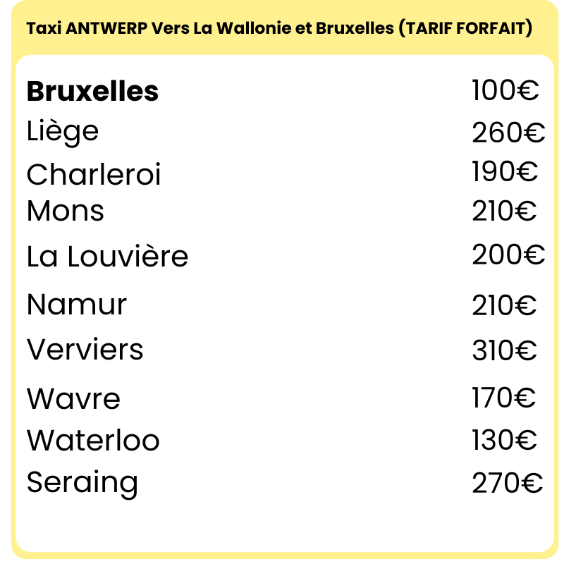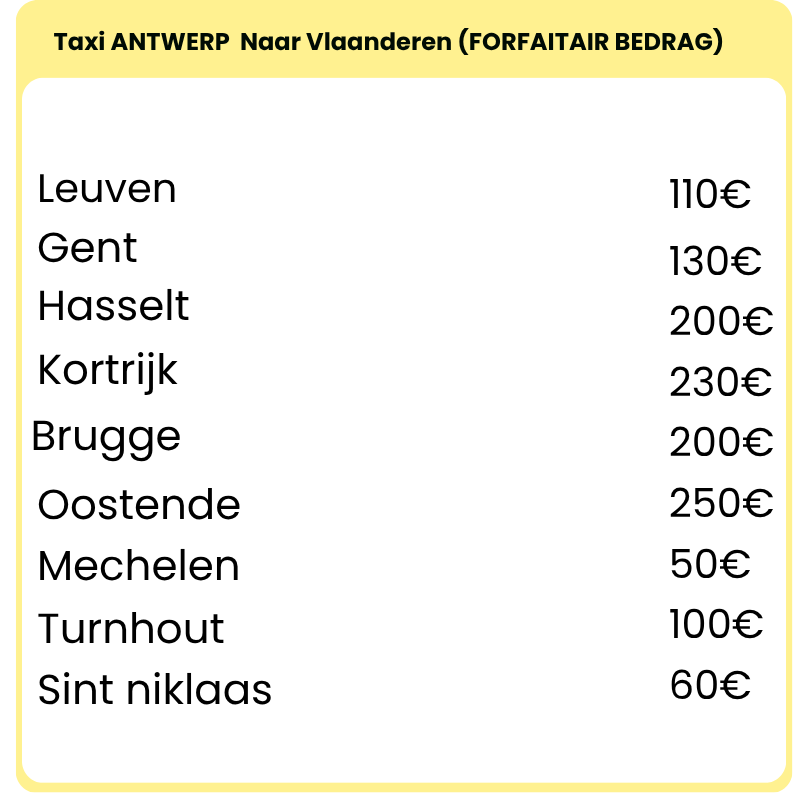 Onze forfaitaire tarieven zijn berekend vanaf het stadscentrum van de vermelde bestemming.